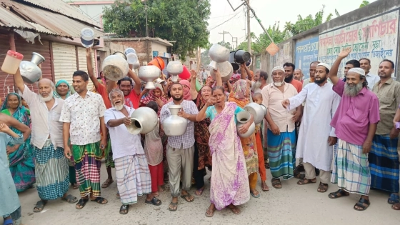 পানি সরবরাহের দাবিতে শনিবার (৩ ফেব্রুয়ারি) বিকেলে চৌরাপাড়া এলাকায় কলস নিয়ে বিক্ষোভ করেছেন এলাকাবাসী।
