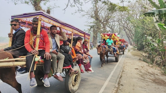 বৃহস্পতিবার (১৫ ফেব্রুয়ারি) ঐতিহ্যবাহী সুসজ্জিত ঘোড়ার গাড়িতে আনন্দ ভ্রমণে মেতে ওঠেন যশোরের রুপদিয়া নার্সারি পরিবারের সদস্যরা।