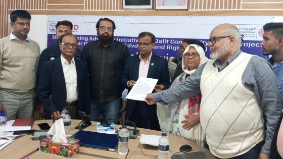 সমাজসেবা অধিদপ্তরের মাধ্যমে দলিত জনগোষ্ঠীর সঠিক পরিসংখ্যান, অনলাইন ডাটাবেস তৈরি এবং পৃথক পরিচয়পত্র প্রদানের দাবি জানিয়েছেন খুলনার নাগরিক নেতারা। বৃহস্পতিবার (১৫ ফেব্রুয়ারি) এ দাবিতে সম্প্রীতি ফোরামের উদ্যোগে প্রধানমন্ত্রী বরাবর স্মারকলিপি প্রদান করা হয়। স্মারকলিপি গ্রহণ করেন জেলা সমাজসেবা অধিদপ্তরের উপপরিচালক খান মোতাহার হোসেন।