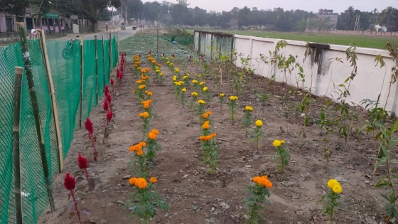 ঠাকুরগাঁও শহরের কালিবাড়ি সড়কের সত্যপীর ব্রিজ এলাকায় ময়লার ভাগাড় পরিষ্কার করে ফুলের বাগান করা হয়েছে।
