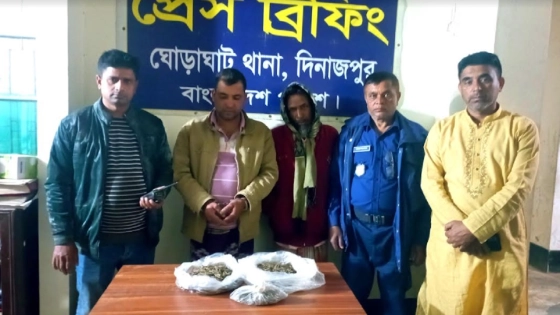 লুঙ্গি-গামছা পরে ছদ্মবেশ ধারণ করে ১ কেজি ১০০ গ্রাম গাঁজাসহ দুই মাদক কারবারিকে গ্রেপ্তার করেছে দিনাজপুরের ঘোড়াঘাট থানা পুলিশ।
