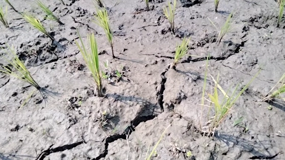 প্রথম দেখায় মনে হতে পারে এটি কোনো মরুভূমি অঞ্চলের দৃশ্য। তবে দূরে তাকালে সবুজ অরণ্য দেখলে সেই ভুল ভেঙে যাবে। নদীমাতৃক দেশ বাংলাদেশের কৃষিজমির দৃশ্য এটি। পানির অভাবে ফসলি জমি শুকিয়ে ফেটে গেছে। যার কারণে ফসল উৎপাদন নিয়ে বিপাকে পড়েছে কয়েক হাজার কৃষক।