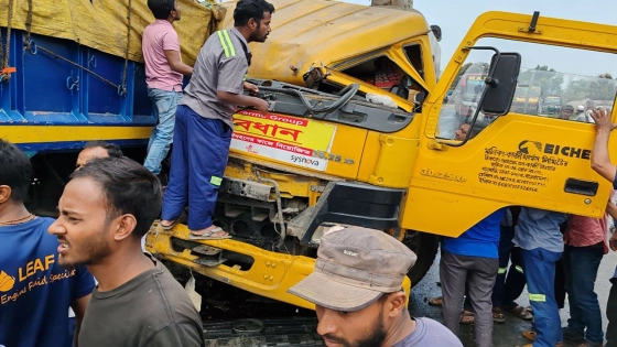 আহতরা হলেন- রংপুর জেলার গংগাচড়া উপজেলা সদরের বাবু রায়ের ছেলে কাজি ফার্মের মুরগির খাদ্যবাহী কাভার্ডভ্যানের চালক পলাশ রায় (৩৬), তার সহকারী গোপালগঞ্জের বাসিন্দা খায়রুল আলম (২৫) এবং রডবাহী ট্রাকের চালকের সহকারী শাহেদ আলী (৩২)। এদের মধ্যে ভ্যানের চালক পলাশ রায়ের অবস্থা গুরুতর।