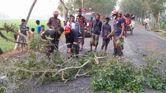 জানা গেছে, ঝড়ের কারণে পার্বতীপুর-ফুলবাড়ী মহাসড়কে দু পাশে থাকা অর্ধ শতাধিক বিভিন্ন প্রজাতির গাছ অধা কিলোমিটার এলাকাজুড়ে ভেঙ্গে পড়ে রাস্তা বন্ধ হয়ে যায়। এতে ওই রাস্তার দু পাশে শতাধিক যানবাহন আটকা পড়ে। খবর পেয়ে পার্বতীপুর ফায়ার সার্ভিস স্টেশনের কর্মীরা ঘটনাস্থলে পৌঁছে রাস্তার ওপর পরে থাকা গাছ কেটে সরাতে সক্ষম হন। এ ঘটনায় প্রায় আধা ঘণ্টা পর ওই রাস্তায় যান চলাচল স্বাভাবিক হয়।