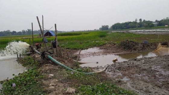 পানি সেচের কাজে থাকা লোকজন জানান, এই বিলটি ইজারা নিয়েছে উজানভাটি মৎস্যজীবী সমবায় সমিতি। এর সভাপতি আব্দুল শুক্কুর, একরাম আলী ও সাহাব উদ্দিন তাদেরকে পানি সেচের কাজে লাগিয়েছেন। হাওরের আরও কয়েকটি জলমহাল সেচে মাছ আহরণ করতে দেখা গেছে।