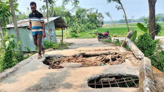 পরে স্থানীয় লোকজন ওই গর্তে কাঠের তৈরি পাটাতন বানিয়ে এখন চলাচল করছে। এই ভাঙাচোরা সেতুটি নির্মাণের দাবি জানিয়েছেন ওই এলাকার স্থানীয়রা।