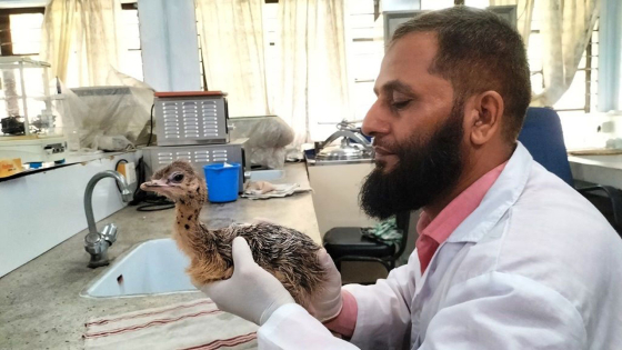 হাবিপ্রবির জেনেটিকস অ্যান্ড অ্যানিমেল ব্রিডিং বিভাগের গবেষণাগারে দেখা যায়, ইনকিউবেটরে নির্দিষ্ট তাপমাত্রায় একটি তাকে ট্রেতে সাজানো সারি সারি উটপাখির ডিম। নিচের ট্রেতে বসে আছে একটি উটপাখির ছানা। হালকা লোম, গায়ে ধূসর রং। এদিক-সেদিক উঁকি দিচ্ছে ছানাটি। পিএইচডি গবেষক খন্দকার তৌহিদুল ইসলাম প্রায় প্রতি ঘণ্টায় ইনকিউবেটর থেকে ছানাটি বের করে টেবিলে রেখে শরীরের তাপমাত্রা পরীক্ষা করছেন।