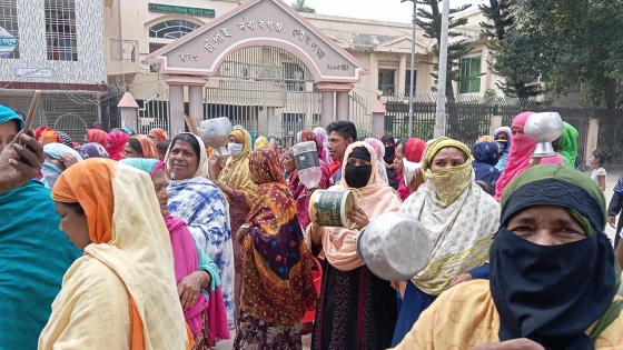 হাসিনা বেগম নামে আরেকজন জানান, রোজা মুখে পানি ঢুয়ে নিয়ে এসে সারতে হচ্ছে শৌচকার্যসহ বাড়ির সকল কাজ। আশপাশের মহল্লায় পানি আনতে গিয়ে ধরতে হয়েছে লাইন। পানির জন্য লেগে যাচ্ছে মারামারি। আমরা পানি সমস্যার দ্রুত সমাধান চাই। আগামী ১০ দিনের মধ্যে এ সমস্যার সমাধান না হলে আরও বড় আন্দোলন কর্মসূচির ঘোষণা দেন বিক্ষোভকারীরা।