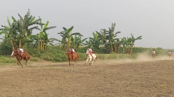 গ্রামীণ জনপদের ঐতিহ্যবাহী ঘোড়দৌড় প্রতিযোগিতা অনুষ্ঠিত হয়েছে রাজবাড়ীর বালিয়াকান্দি উপজেলার জামালপুর ইউনিয়নের চত্রার বিলের মাঠে।
