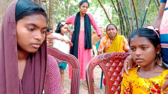 বুধবার (১৭ এপ্রিল) বিকেলে বেজিডাঙ্গায় মিনা-মিলির বাড়িতে গেলে দেখা যায় দুই বোন মন খারাপ করে বসে আছে। আর রাস্তার অপর পাশেই বাশ বাগানে কবরে শায়িত তাদের মা সোনায়া এবং ছোট বোন নূরানী।