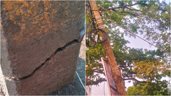 স্থানীয় মালেক মিয়া ও কাজলসহ কয়েকজন ব্যক্তি বলেন, মাসখানেক আগে উপজেলা পরিষদের বাউন্ডারির জন্য গাছ কাটতে গেলে তা খুঁটির উপরে পরে। এ সময় বিদ্যুতের পাকা খুঁটির নিচের অংশ ভেঙে গেছে। পল্লীবিদ্যুতের লোকজন এসে রশি দিয়ে টানা দিয়েছেন। রশি ছিড়ে যে কোনো সময় খুঁটিটি ভেঙে যেতে পারে। এতে করে প্রাণহানির আশঙ্কা রয়েছে। খুঁটিটি তুলে নিয়ে নতুন খুঁটি দেওয়া দ্রুত প্রয়োজন।