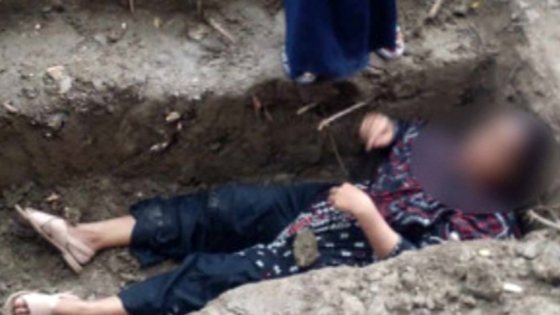 ফেসবুকে ভাইরাল হওয়া ভিডিওতে দেখা গেছে, এক নারী খোঁড়া কবরে বসে ও শুয়ে রয়েছেন। গ্রামবাসীরা তাকে সেখান থেকে ওঠানোর চেষ্টা করছে। কবরের আশপাশে গ্রামবাসীর সঙ্গে পুলিশ সদস্যরাও রয়েছেন। সেখানে জড়ো হওয়া গ্রামবাসীরা বলছে, আপন শাশুড়ি। এমন কাজ কি কেউ করে। তখন একজন তাকে বলছেন, আপনি কাগজে না পাইলে কি করবেন। আপনি কি কবরে শুয়ে জমি নেবেন। আপনি না পেলে কেমনে নেবেন। সবই এক জায়গা দিয়ে নেবেন। একপর্যায়ে কবরে শুয়ে পড়েন ওই নারী। এ সময় কেউ কেউ ক্ষোভে তাকে চাপা দেওয়ার কথা বলেন।