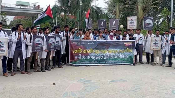 এ সময় তারা মিছিলে ফ্রি প্যালেস্টাইন-স্টপ জেনোসাইড, স্বৈরাচার নিপাত যাক-ফিলিস্তিন মুক্তি পাক, উই ওয়ান্ট জাস্টিস-জয় জয় ফিলিস্তিন, ফ্রম দ্য রিভার টু দ্য সি-প্যালেস্টাইন উইল বি ফ্রি ইত্যাদি স্লোগান দিতে থাকেন।