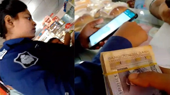 টাকা লেনদেনের একটি ভিডিও সামাজিক যোগাযোগমাধ্যমে ছড়িয়ে পড়েছে। ভিডিওতে দেখা গেছে, পুলিশ সদস্য তানজিলা আক্তার একটি দোকানে এক হাজার টাকার কয়েকটি বান্ডিল গুনে নিচ্ছেন।