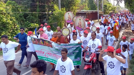 শোভাযাত্রায় সুসজ্জিত পরিবহন এবং রঙ-বেরঙের বৌদ্ধ পতাকা, ব্যানার, ফেস্টুন হাতে নিয়ে হাজারো পুণ্যার্থী বৌদ্ধ ধর্মাবলম্বী নারী ও পুরুষ অংশগ্রহণ করেন।