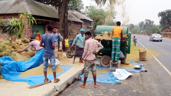 দিনাজপুরের ফুলবাড়ী-দিনাজপুর-মধ্যপাড়া-রংপুর-বগুড়া সঙ্গে সড়কপথের যোগাযোগের মাধ্যম সড়ক ও মহাসড়কের বিভিন্ন স্থানে চলছে ধান ও ভুট্টা মাড়াই। মহাসড়কের পাশে রয়েছে সারি সারি খড়ের পালা। আর সড়কজুড়ে শুকানো হচ্ছে ভুট্টা, ধান ও খড়।