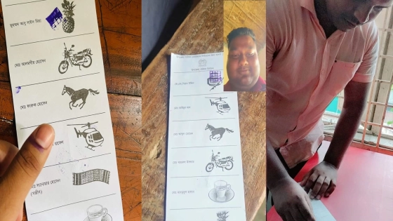 একই উপজেলার হেমনগর ইউনিয়ন ছাত্রলীগের সভাপতি ‘বিজয় এর মার্কা দোয়াত কলম’ লিখে সিল মারা ব্যালট পেপার ফেসবুকে পোস্ট করেছেন।
