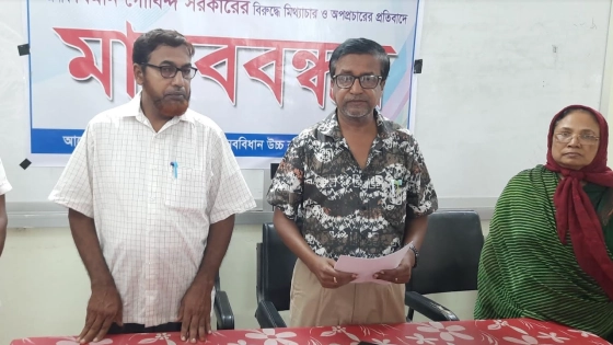নাটোর শহরের নববিধান উচ্চ বিদ্যালয়ের প্রধান শিক্ষক বিমান গোবিন্দ সরকারকে হুমকি এবং উদ্দেশ্যপ্রণোদিত ও ষড়যন্ত্রমূলক অপপ্রচারের প্রতিবাদে সংবাদ সম্মেলন অনুষ্ঠিত হয়েছে।