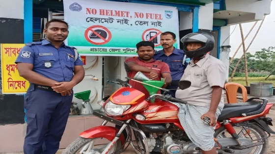 এ সময় উপস্থিত ছিলেন ইউএনও আরিফুজ্জামান, থানার ওসি আব্দুল লতিব শেখসহ স্থানীয় জনপ্রতিনিধিরা। হেলমেট ছাড়া কোনো মোটরসাইকেল চালকের এখন থেকে পাম্পে তেল দেওয়া হবে না। জনসাধারণকে এ নির্দেশনা মেনে চলার জন্য স্থানীয় প্রশাসন ও পুলিশের পক্ষ থেকে বিনীত অনুরোধ জানানো হয়েছে।