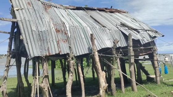হানিফ মিয়ার স্ত্রী বলেন, পোনা ধরার টাকায়ই চলে আমাদের সংসার। ১০ বছর ধরে টঙ পেতে বসবাস করছি।