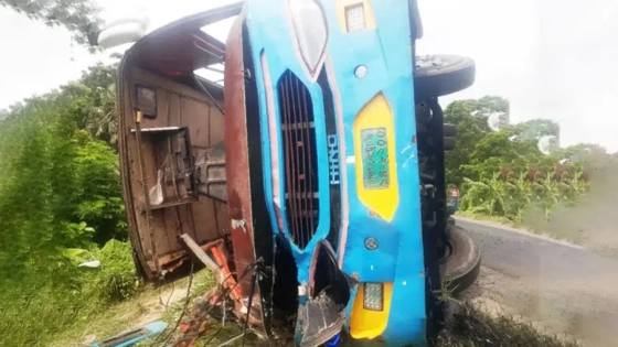 এদিকে সকাল ৯টার দিকে ঢাকা-খুলনা মহাসড়কের নগরকান্দা উপজেলার চর যশোরদি ইউনিয়নের গজারিয়া বাসস্ট্যান্ড এলাকায় স্বাধীন পরিবহন নামের চলন্ত একটি বাস উল্টে যায়। তাতে বাসের সুপারভাইজার রাজন ব্যাপারী ঘটনাস্থলেই মারা যান। এ ঘটনায় তিনজন যাত্রী আহত হয়। আহতদের ভাঙ্গা উপজেলা স্বাস্থ্য কমপ্লেক্সে ভর্তি করা হয়েছে। বাসটি ঢাকা থেকে গোপালগঞ্জের মুকসুদপুরে যাচ্ছিল।
