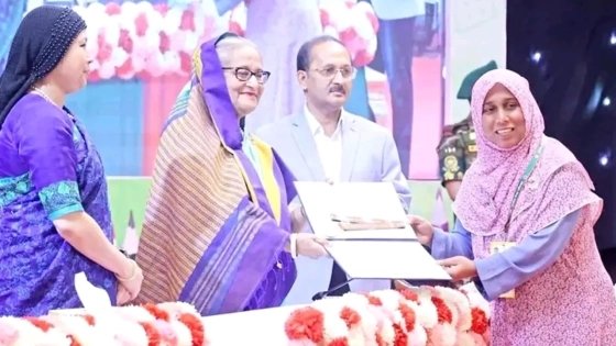 জাতীয় পর্যায়ে শ্রেষ্ঠ প্রধান শিক্ষিকা নির্বাচিত হয়ে প্রধানমন্ত্রীর হাত থেকে পদক পেয়েছেন রংপুরের পীরগাছা উপজেলার পবিত্রঝাড় সরকারি প্রাথমিক বিদ্যালয়ের প্রধান শিক্ষিকা মোছা. রেহেনা বেগম।