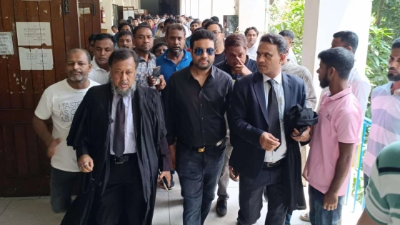 তার পক্ষে মামলা পরিচালনাকারী চারজন আইনজীবী হলেন- অ্যাডভোকেট বারী ভূইয়া, অ্যাডভোকেট মো. রফিক আহমেদ, অ্যাডভোকেট মো. আবু আল ইউসুফ খান টিপু এবং অ্যাডভোকেট আবু বক্কর সিদ্দিক।