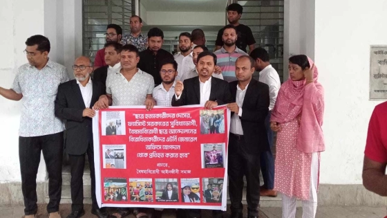 মানববন্ধনে আইনজীবীরা ছাত্র হত্যাকারীদের দোসর, ফ্যাসিস্ট সরকারের সুবিধাভোগী, বৈষম্যবিরোধী ছাত্র আন্দোলনের বিরোধিতাকারীদের কীভাবে অ্যাটর্নি জেনারেল কার্যালয়ে নিয়োগ দেওয়া হয়েছে এমন প্রশ্ন তুলেছেন আইনজীবীরা?