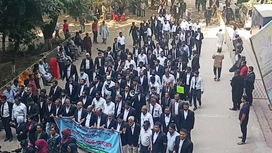 বিএনপির ডাকা ৪৮ ঘণ্টার অবরোধের সমর্থনে মিছিল করেছে বিএনপিপন্থি আইনজীবীরা। বুধবার (১৫ নভেম্বর) ঢাকার নিম্ন আদালত প্রাঙ্গণে এ মিছিল করে তারা।