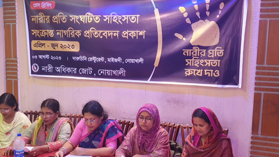 বৃহস্পতিবার (৩ আগস্ট) বেলা ১১টায় মাইজদী শহরের একটি চাইনিজ রেস্টুরেন্টে নারীর প্রতি সহিংসতার ত্রৈমাসিক প্রতিবেদন প্রকাশ করে উদ্বেগ জানিয়েছে সংগঠনটি।