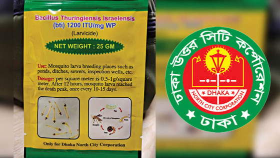 ডেঙ্গুর জীবাণুবাহী এইডিস মশার লার্ভা নিধনে জৈব কীটনাশক বিটিআই প্রয়োগের কাজ গত ৭ অগাস্ট উদ্বোধন করেন মেয়র আতিকুল ইসলাম। এই কীটনাশকের পুরো নাম ব্যাসিলাস থুরিংয়েইনসিস ইসরায়েলেনসিস।