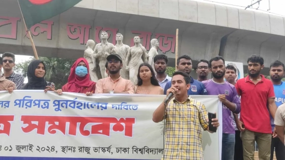 তিনি আরও বলেন, ২০১৮ সালে এক রক্তক্ষয়ী সংগ্রামের মধ্য দিয়ে বৈষম্যমূলক, নিপীড়নমূলক, নির্যাতনমূলক কোটা ব্যবস্থার কবর দিয়েছিলাম। প্রধানমন্ত্রী যখন সংসদে দাঁড়িয়ে, আপামর ছাত্র জনতার কথা বিবেচনা করে তিনি কোটা বাতিল করেছিলেন সেখানে হাইকোর্ট থেকে কিভাবে সেই পরিপত্র আবার বাতিল করা হয় সেটা আমরা জানি না। আজকে সারাদেশের ছাত্রসমাজ একযোগে আন্দোলন শুরু করেছে। এই কোটা পুনর্বহালের সিদ্ধান্ত বাতিল করে ২০১৮ সালের পরিপত্র বহাল রাখার আগ পর্যন্ত শিক্ষার্থীরা আন্দোলন চালিয়ে যাবে।