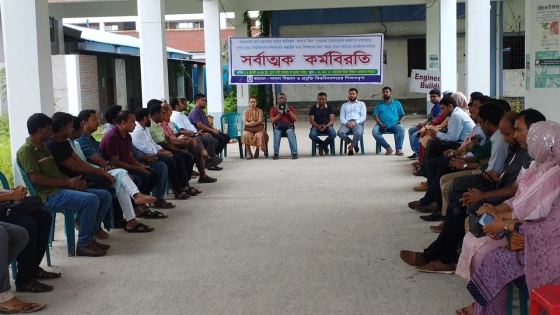 কর্মবিরতি কারণে প্রথম দিনের ন্যায় আজও ক্লাস, পরীক্ষা, ল্যাব কার্যক্রম, দাপ্তরিক কাজ ও গুচ্ছ ভর্তি কার্যক্রমসহ সবকিছু বন্ধ রয়েছে।