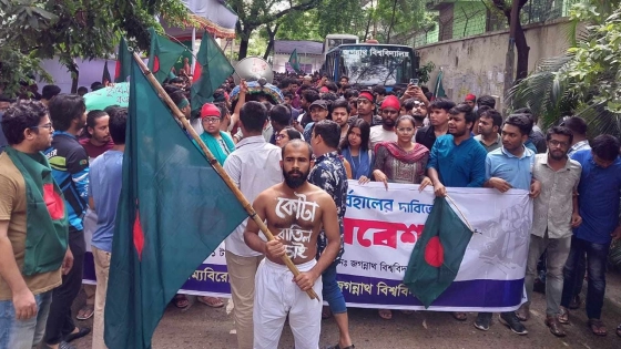 কোটা বাতিলের দাবিতে ৩য় দিনের মতো বিক্ষোভ মিছিল ও ছাত্রসমাবেশ করেছে জগন্নাথ বিশ্ববিদ্যালয়ের (জবি) শিক্ষার্থীরা।
