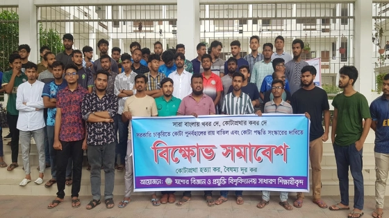 কোটা পদ্ধতি সংস্কারের দাবিতে যশোর বিজ্ঞান ও প্রযুক্তি বিশ্ববিদ্যালয়ে আগামী ৭ দিনের ক্লাস-পরীক্ষা বর্জনের ঘোষণা দিয়েছেন আন্দোলনকারী শিক্ষার্থীরা।