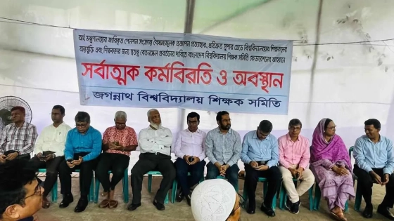 বুধবার (১০ জুলাই) সর্বজনীন পেনশনের প্রত্যয় স্কিম বাতিলসহ তিন দাবিতে জগন্নাথ বিশ্ববিদ্যালয়ের শিক্ষকদের দশম দিন কর্মবিরতি ও অবস্থান কর্মসূচিতে উপস্থিত হয়ে তিনি এসব কথা বলেন।