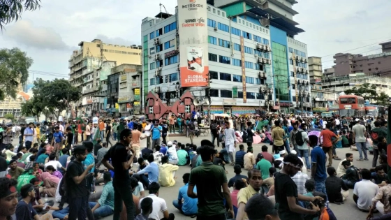 সরকারি চাকরিতে কোটা পুনর্বহালের প্রতিবাদে রাজধানী ঢাকার গুলিস্তানের জিরো পয়েন্ট মোড় অবরোধ করেছে জগন্নাথ বিশ্ববিদ্যালয়ের শিক্ষার্থীরা।