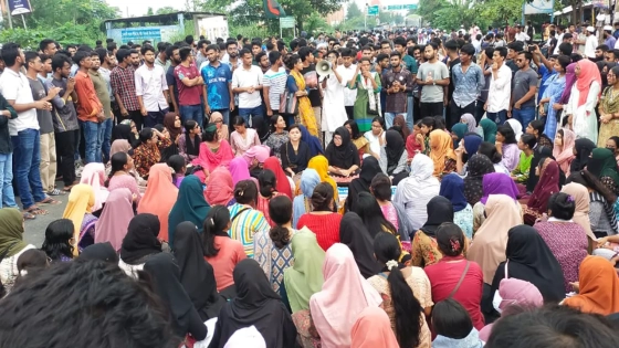 এর আগে বেলা সাড়ে ৩টা থেকে বিশ্ববিদ্যালয়ের গ্রাউন্ড ফ্লোরে জড়ো হতে থাকে শিক্ষার্থীরা। এ সময় পুলিশ ও বিশ্ববিদ্যালয় প্রশাসনের পক্ষ থেকে শিক্ষার্থীদের মহাসড়ক অবরোধ না করার নির্দেশনা দেওয়া হয়। বিশ্ববিদ্যালয়ের প্রধান ফটকে তালা ঝুলিয়ে দেয় তারা।