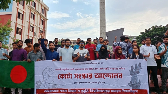 শুক্রবার (১২ জুলাই) বিকেলে সাড়ে ৪টায় বৈষম্যবিরোধী ছাত্র আন্দোলনের ব্যানারে বিশ্ববিদ্যালয়ের শহীদ মিনার চত্বরের সামনে থেকে বিক্ষোভ মিছিলটি শুরু হয়।