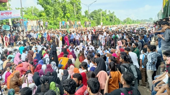 কোটা সংস্কারের পক্ষে চলমান আন্দোলনে অংশ নেওয়া জাহাঙ্গীরনগর বিশ্ববিদ্যালয়, গণবিশ্ববিদ্যালয়সহ বিভিন্ন স্কুল-কলেজের শিক্ষার্থীরা তিন দফা দাবিতে ঢাকা-আরিচা মহাসড়ক অবরোধ করেছে।