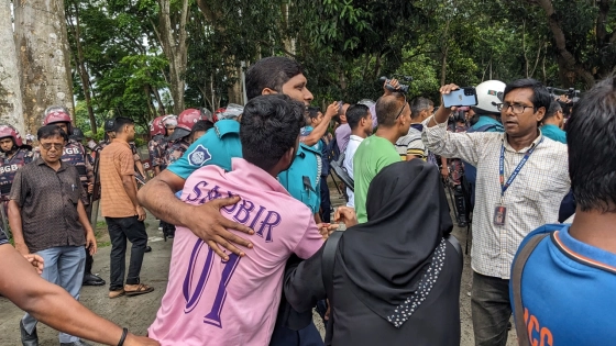 বৃহস্পতিবার (১ আগস্ট) দুপুর ১২টায় বিশ্ববিদ্যালয়ের বুদ্ধিজীবী চত্বরে আন্দোলনকারীদের তুলে নেওয়ার চেষ্টা করলে আন্দোলনরত শিক্ষকরা বাধা দেন।