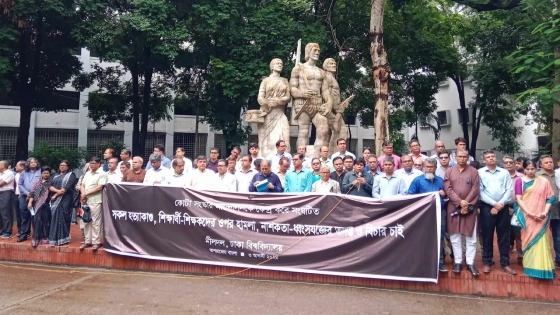 শনিবার (৩ আগস্ট) বেলা সোয়া ১১টায় ঢাকা বিশ্ববিদ্যালয়ের কলা ভবনস্থ অপরাজেয় বাংলার পাদদেশে এ কর্মসূচির আয়োজন করে সংগঠনটি।