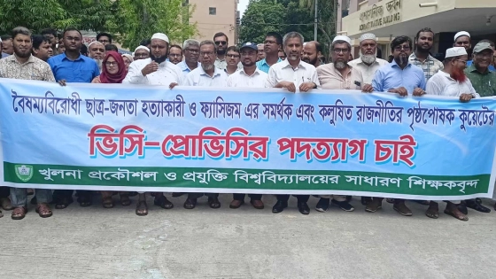 বক্তারা আরও বলেন, আমরা চাই অবিলম্বে ভিসি এবং প্রো-ভিসি পদত্যাগ করুক। গত কয়েক বছরে তারা বিশ্ববিদ্যালয়ের শিক্ষক, ছাত্র, কর্মকর্তা-কর্মচারীদের প্রতি তাদের যে নির্যাতন, নিয়োগ বাণিজ্য, দলীয়করণ সবকিছু ছাড়িয়ে যে পর্যায়ে চলে গেছে, সে কারণে তারা আজ ক্যাম্পাসে আসতে ভয় পাচ্ছে, পালিয়ে বেড়াচ্ছে। লজ্জার ব্যাপার, যিনি ক্যাম্পাসের অভিভাবক তিনি আজ পালিয়ে বেড়াচ্ছেন।