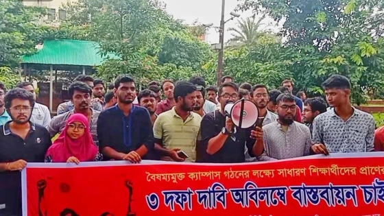 রোববার (১১ আগস্ট) বিশ্ববিদ্যালয়ের নজরুল ভাস্কর্যের পাদদেশে আন্দোলনকারী শিক্ষার্থীরা তিন দফা দাবি পেশ করেন।