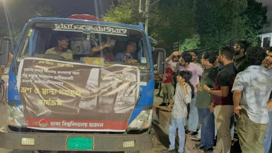 এর আগে দিনব্যাপী ঢাকা বিশ্ববিদ্যালয়ের কেন্দ্রীয় খেলার মাঠে ত্রাণ সামগ্রীর প্যাকেটিং কার্যক্রম সম্পন্ন করেন ছাত্রদল নেতাকর্মীরা।
