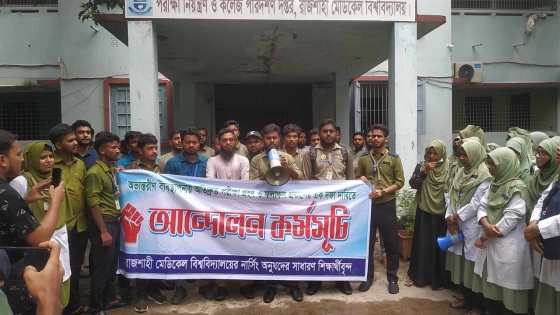 স্বেচ্ছায় ফাঁসি চেয়ে গলায় রশি নিয়ে বিক্ষোভ করেছে রাজশাহী মেডিকেল বিশ্ববিদ্যালয়ের (রামেবি) নার্সিং অনুষদের শিক্ষার্থীরা। বৃহস্পতিবার (৫ সেপ্টেম্বর) সকাল ১১ টার দিকে রাজশাহী মেডিকেল বিশ্ববিদ্যালয়ের পরীক্ষা নিয়ন্ত্রক ও কলেজ পরিদর্শকের কার্যালয়ের সামনে এ কর্মসূচি পালন করেন শিক্ষার্থীরা।