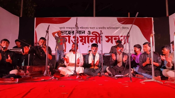 বৈষম্যবিরোধী ছাত্র আন্দোলনে শহীদদের স্মরণে ও ভারতীয় আধিপত্যবাদের বিরুদ্ধে ‘দ্রোহের গান ও কাওয়ালি সন্ধ্যা’ অনুষ্ঠিত হয়েছে জাতীয় কবি কাজী নজরুল ইসলাম বিশ্ববিদ্যালয়ে।