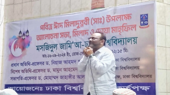 ঢাকা বিশ্ববিদ্যালয়ে (ঢাবি) বিশ্বনবী হজরত মুহাম্মদ (সা.)-এর জন্মবার্ষিকী তথা পবিত্র ঈদে মিলাদুন্নবী উপলক্ষে আলোচনা সভা, মিলাদ ও দোয়া মাহফিল অনুষ্ঠিত হয়েছে।