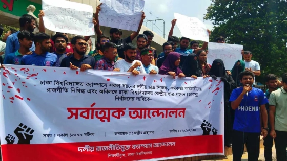 ঢাকা বিশ্ববিদ্যালয় (ঢাবি) ক্যাম্পাসে সব ধরনের দলীয় বা লেজুড়বৃত্তিক ছাত্র-শিক্ষক, কর্মকর্তা-কর্মচারীদের রাজনীতি নিষিদ্ধ এবং অবিলম্বে ঢাকা বিশ্ববিদ্যালয় কেন্দ্রীয় ছাত্র সংসদ (ডাকসু) নির্বাচনের দাবিতে সর্বাত্মক আন্দোলন কর্মসূচির ঘোষণা দিয়েছেন শিক্ষার্থীরা।