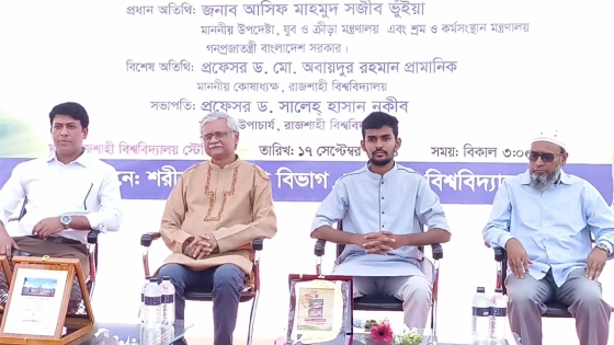 রাজশাহী বিশ্ববিদ্যালয় বনাম রাজশাহী প্রকৌশল ও প্রযুক্তি বিশ্ববিদ্যালয়ের মধ্যকার প্রীতি ম্যাচের উদ্বোধনী অনুষ্ঠানে প্রধান অতিথি হিসেবে উপস্থিত ছিলেন ক্রীড়া উপদেষ্টা আসিফ মাহমুদ সজীব ভূঁইয়া।
